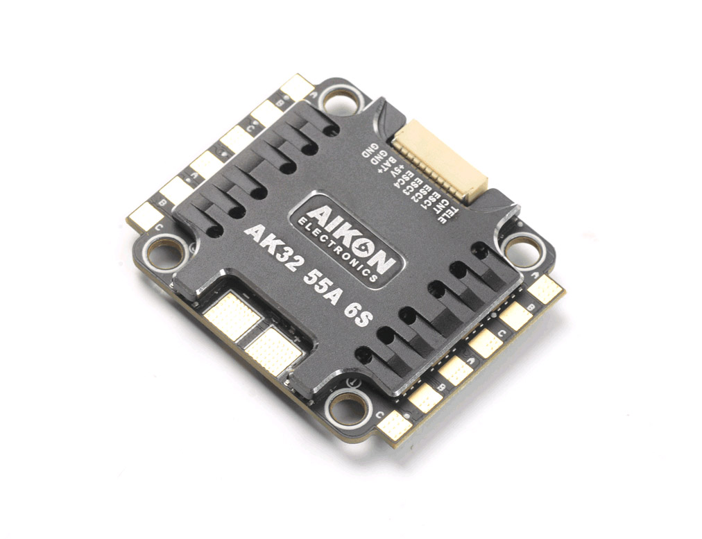 The Aikon AK32 4-in-1 55A 6S is a new generation ESC that uses a variety of bleeding edge technologies in hardware and firmware.