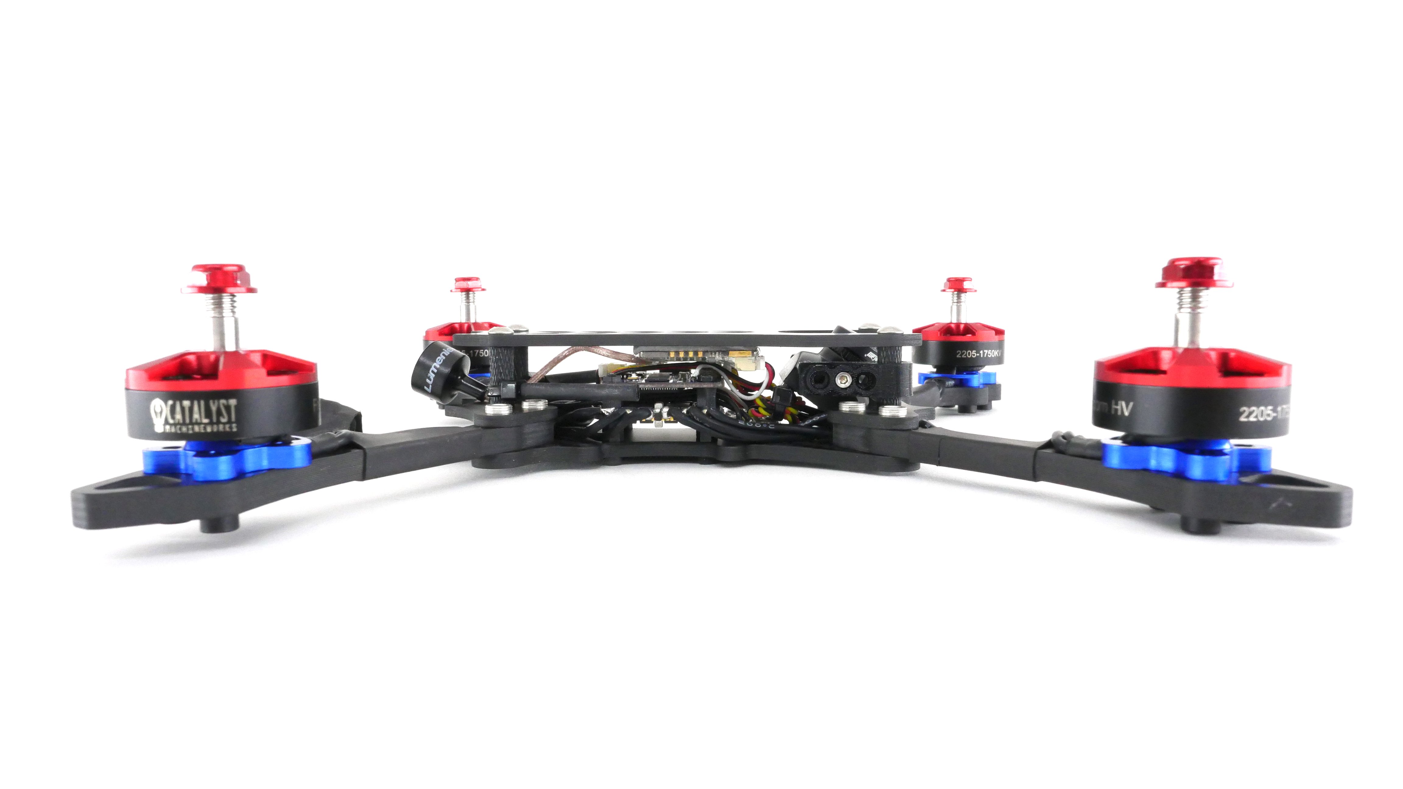 The SlamNasty is a premium racing frame using quality components and innovative Catalyst design philosophies with a price tag that is extremely competitive. This design was created to be light weight, tough, and simple. It is very easy to build, and field maintenance is a breeze. Two versions are available. The only difference between the two is the standoff length. The SuperSlamNasty is for builders who prefer a very slammed deck (20mm of room from the bottom to top plate). The SlamNasty is a more standard type build with plenty of room for tall stacks (26mm of room from the bottom to top plate). We offer a number of upgrades and accessories for this bird so please have a look at the links near the bottom of the page. To learn more about this Nasty piece of FPV art check out the video above where we review the machine in great detail.