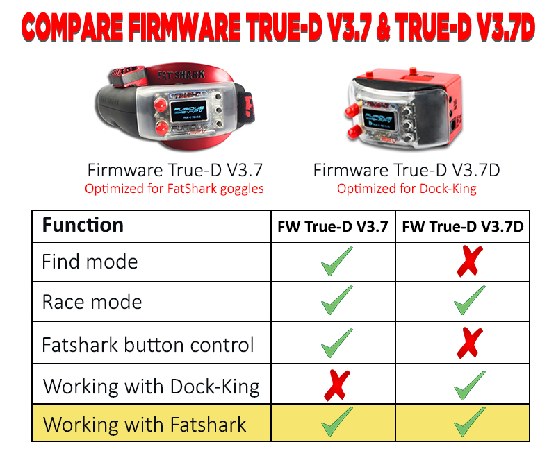 With a total of (40) available channels, the TRUE-D is hyper flexible, offering Manual Channel Setup, Auto Search Mode, and Working Channel Mode. These different selections provide the end user with total control, allowing you to select what works the very best when it comes to your FPV systems.
