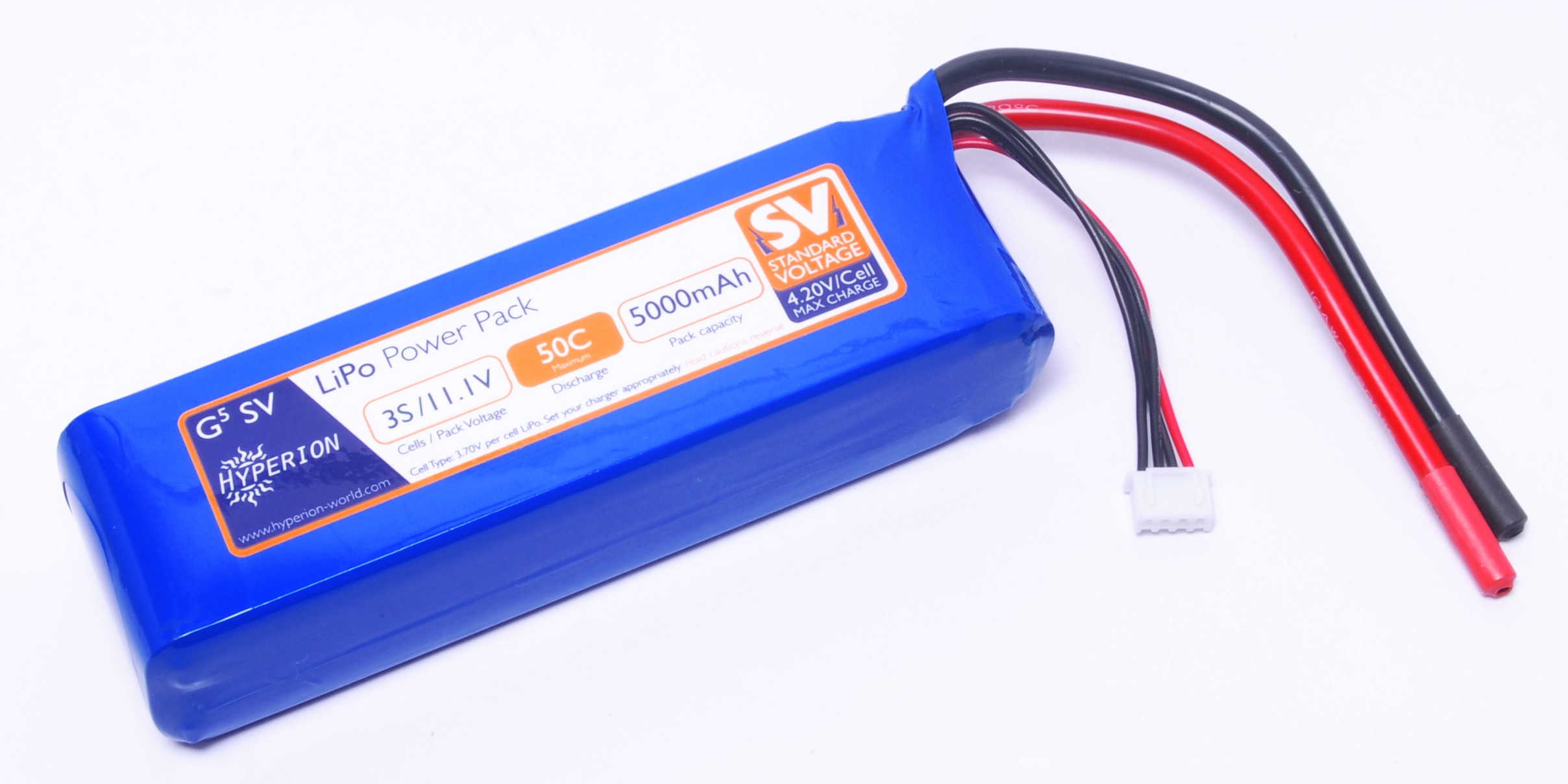 The Hyperion G5 LiPo packs are made with a new Hybrid RS construction technology, super-fine substrate materials, rigorous ISO 9001 Quality Control, and final cell matching process, which all guarantee you not only this superb performance, but also tightly balanced and long-lasting packs.