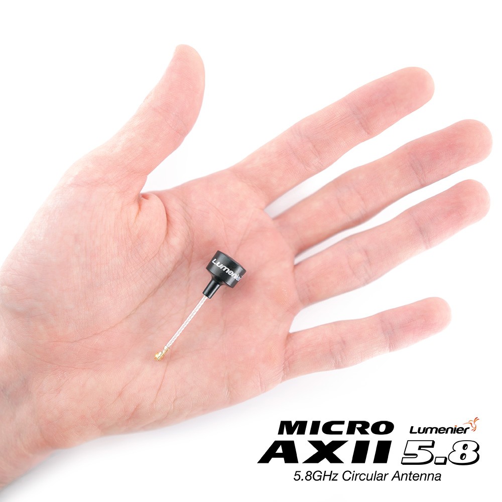 The Lumenier Micro AXII 5.8GHz Antenna is the next evolution of the world’s most popular FPV antenna. The Micro AXII has the same incredible performance as the original AXII antenna, but now 1/2 the size and weight! Lumenier, in collaboration with renowned FPV antenna designer Hugo of TrueRC, brings you the smallest, lightest and best performing FPV antennas in the world. The Micro AXII antenna is an original design that features a new RF pathway technology (unique hybrid network) allowing it to be incredibly lightweight (1.6g) making it the smallest and lightest 5.8GHz CP antenna.
