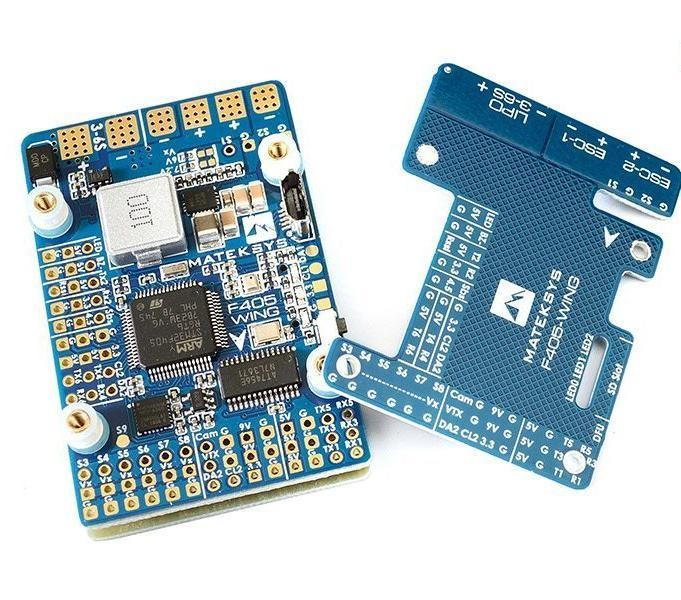 Matek’s F405-Wing is the premier flight controller made specifically for FPV wing aircraft. Loaded with an array of features and tons of room for peripherals, this board lets you choose how you want to fly. INAV OSD, Blackbox, VCP and 6 UARTS, room for 2 motors and 7 servo outputs, 4 BEC and more. It might be easier just to read the spec sheet.