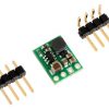 The four connections are labeled on the back side of the PCB, and they are arranged with a 0.1″ spacing along the edge of the board for compatibility with solderless breadboards, connectors, and other prototyping arrangements that use a 0.1″ grid. You can solder wires directly to the board or solder in either the 4×1 straight male header strip or the 4×1 right-angle male header strip that is included.