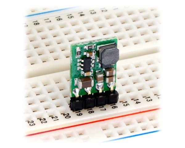 The compact (0.4″ × 0.5″) D24V6F5 switching step-down (or buck) voltage regulator takes an input voltage between 7 V and 42 V and efficiently reduces it to 5 V while allowing for a maximum output current of 600 mA. The pins have a 0.1″ spacing, making this board compatible with standard solderless breadboards and perfboards.