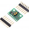 The carrier board includes a low-dropout linear voltage regulator that provides the 2.8 V required by the VL53L1X and allows the sensor to be powered from a 2.6 V to 5.5 V supply. The regulator output is available on the VDD pin and can supply almost 150 mA to external devices. The breakout board also includes a circuit that shifts the I²C clock and data lines to the same logic voltage level as the supplied VIN, making it simple to interface the board with 3.3 V or 5 V systems, and the board’s 0.1″ pin spacing makes it easy to use with standard solderless breadboards and 0.1″ perfboards. The board ships fully populated with its SMD components, including the VL53L1X, as shown in the product picture.