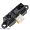 The GP2Y0A21 uses a 3-pin JST PH connector that works with our 3-pin JST PH cables for Sharp distance sensors (not included), as shown in the upper picture on the right. These cables have 3-pin JST connectors on one end and are available with pre-crimped male pins, pre-crimped female pins, and with unterminated wires on the other end. It is also possible to solder three wires to the sensor where the connector pins are mounted (see the lower picture to the right). When looking at the back, the three connections from left to right are power, ground, and the output signal.